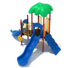 Sitting like a tropical island in the middle of the playground, the Village Greens play apparatus has its very own Leaf Roof to inspire adventurous playtimes. Two waterfalls cascade from the side of the structure. The first is a Wave Slide which features a bump in the middle to add to the sliding experience. …