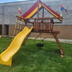 5′ 2″ deck height, 8.5′ swing beam and 10′ slide