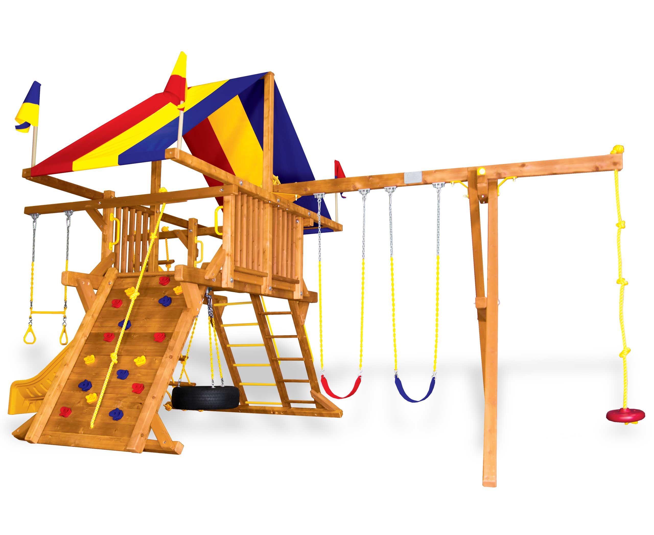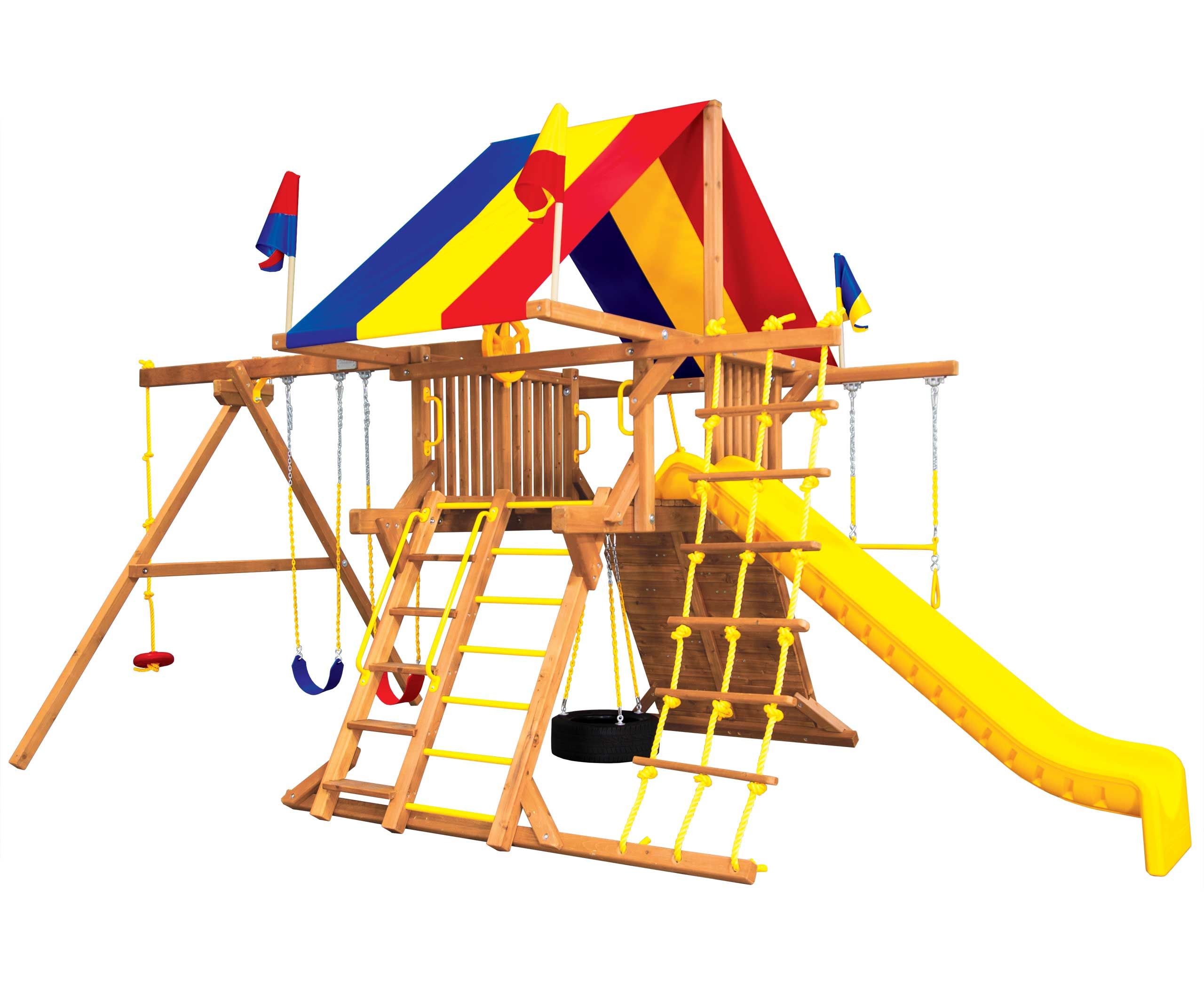 5′ 2″ deck height, 8.5′ high swing beam and 10′ slide