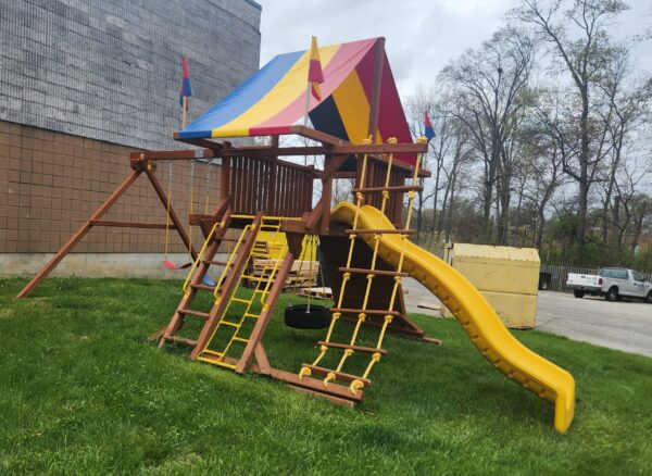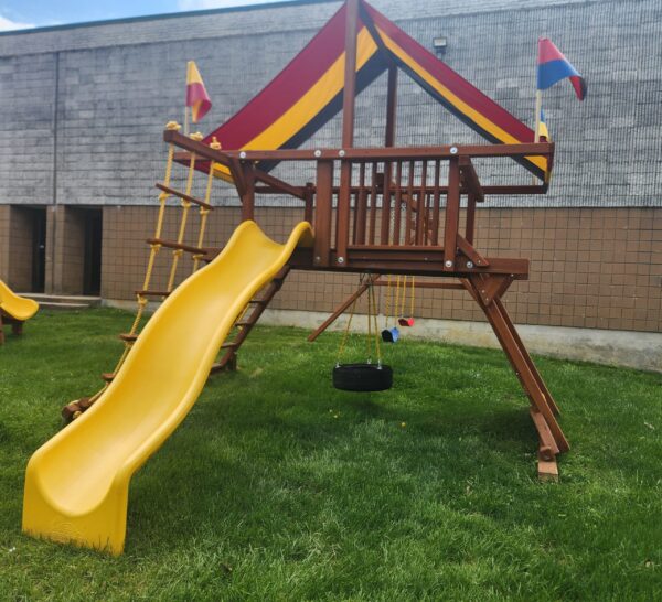 5′ 2″ deck height, 8.5′ swing beam and 10′ slide