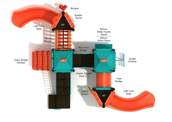 Children can start scaling the Snake Climber or mounting the Draw Bridge Climber as their first test of epic adventure and physical fitness. From there, they can tread across the Bones Bridge or opt to cross the Tube Bridge. Whatever they may choose, their journey ends with a Left Turn Slide, and a new cycle of fun can begin again.
