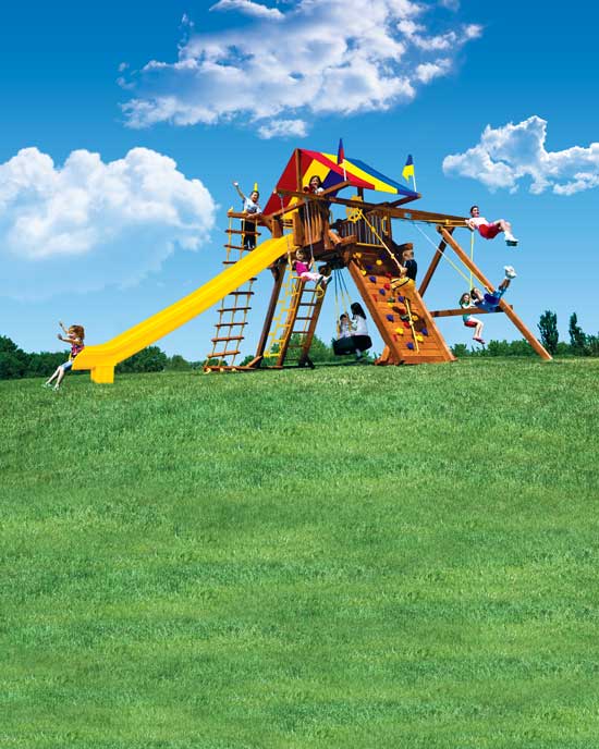 7′ 2″ deck height, 10.5′ high swing beam, 14′ slide
