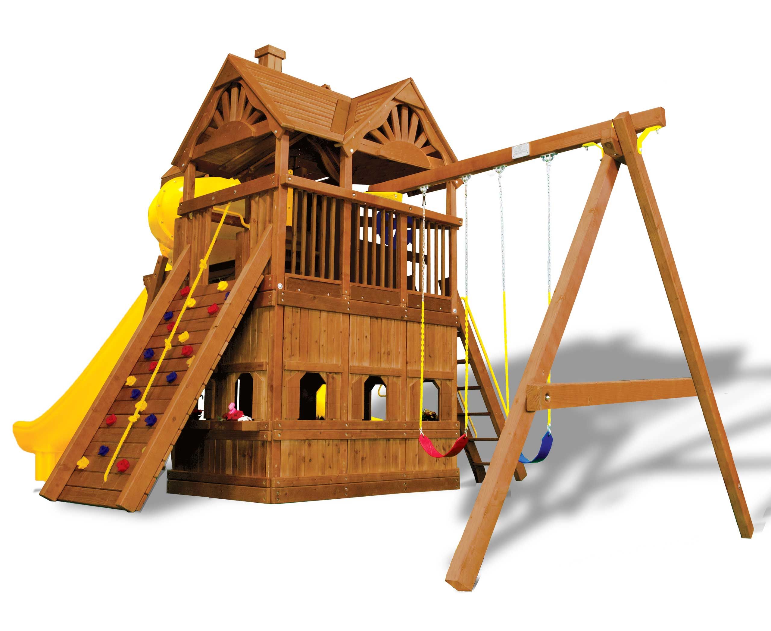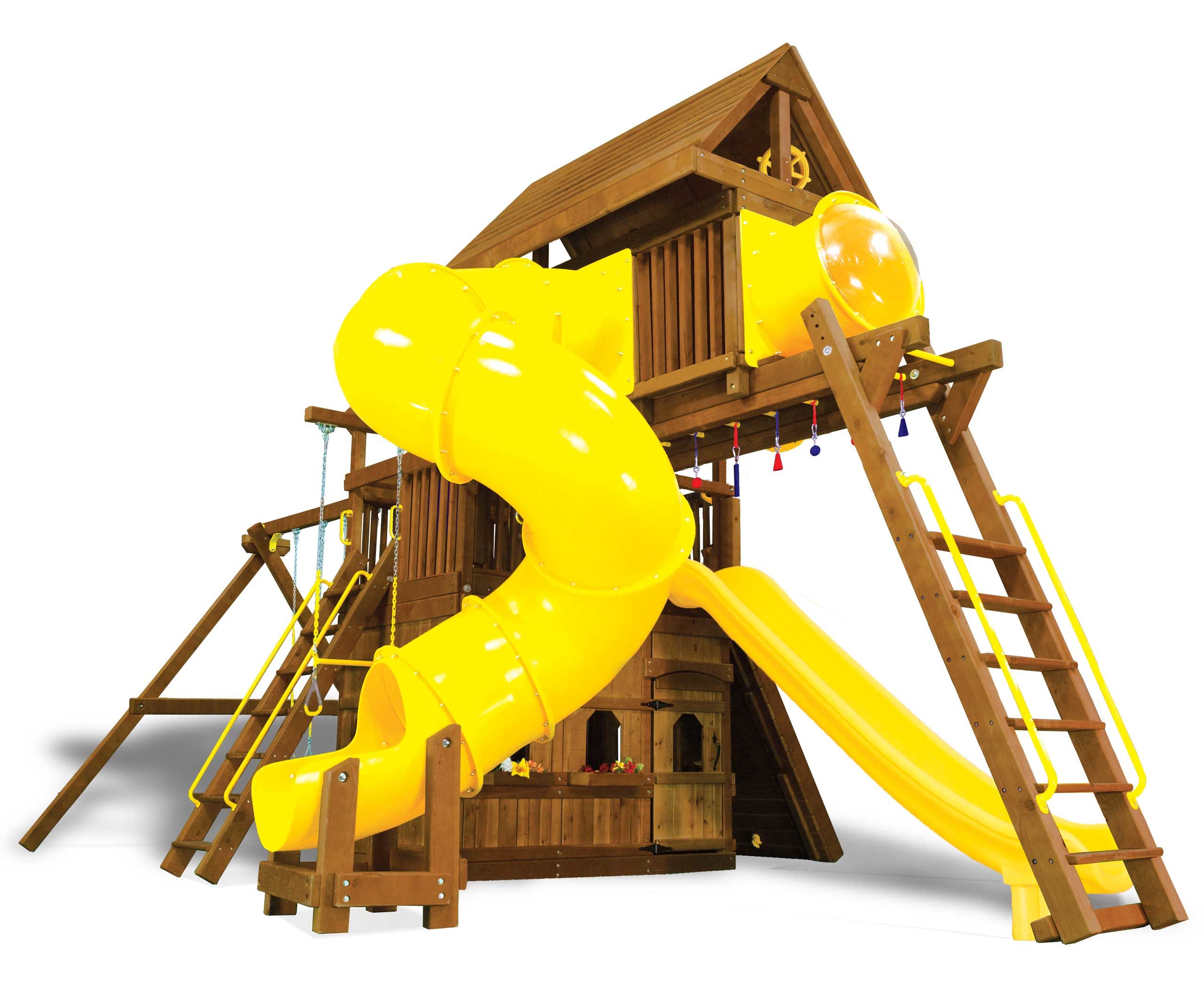 6′ deck height, 9.25′ high swing beam, 11′ scoop slide + 360° spiral