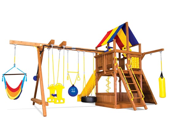 5′ 2″ deck height, 8.5′ high swing beam, 10′ slide